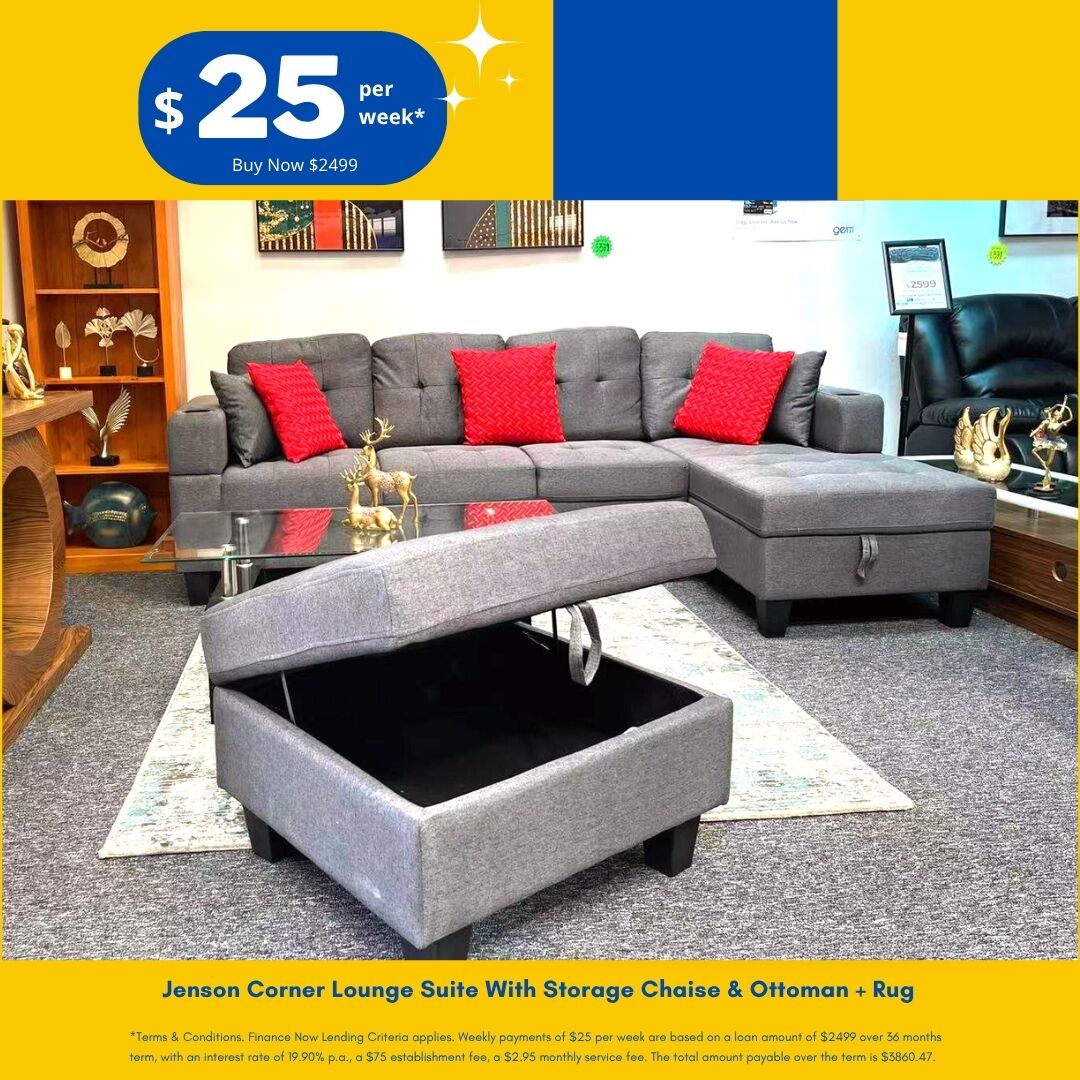 Jenson Sectional Lounge Suite is the latest bestseller or sitting down for family movie night. This sectional offers a place to relax for every occasion. Jenson sectional lounge suite that offers a refreshing look and the comfort perfect to enhance any living area. The cushions are filled with foam for a moderate firmness.