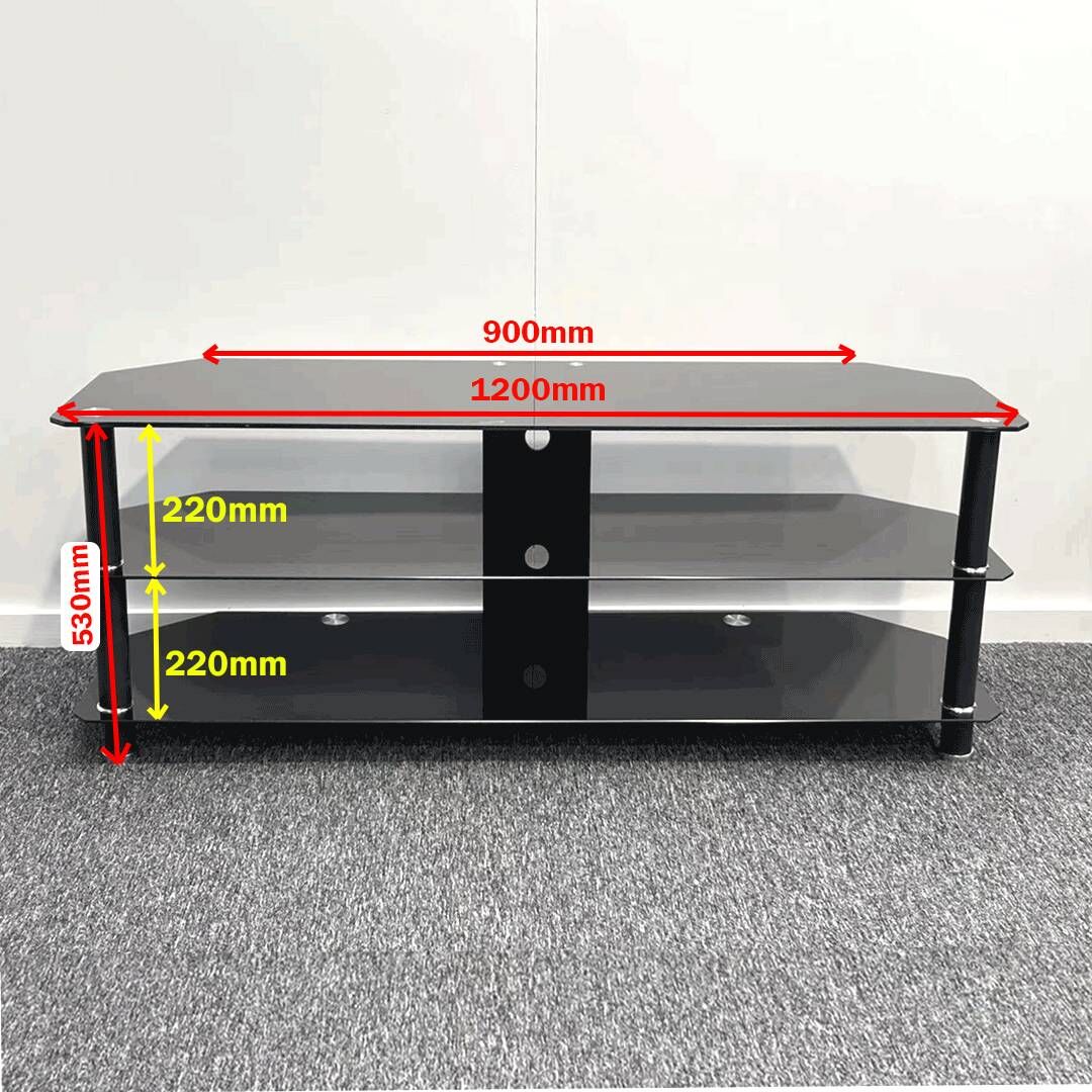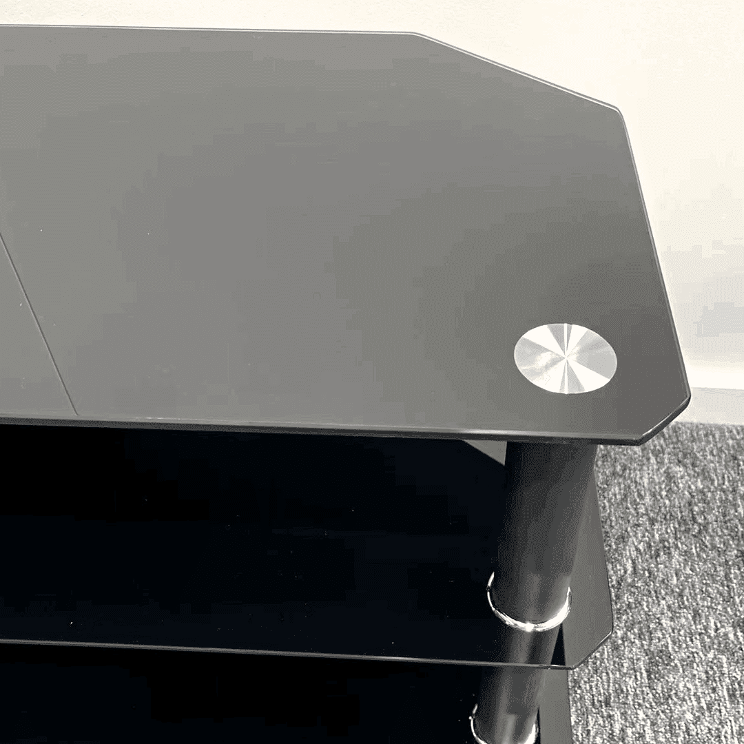 Kennel Entertainment Unit is perfect for TV’s up to 50″. This TV unit shelves are made of black toughened glass for a minimal modern feel. The lower two shelves are great to rest your game consoles, controllers, and other electronic devices. We love the versatility of this stand. The rear cable management system allows discrete cable running to tidy your installation and keep this stand clutter-free. Place the TV stand in the corner of your living space or wherever you have open space. Kennel entertainment unit is an ideal TV stand for your space.