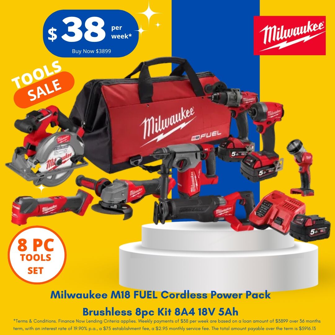 The Milwaukee Combo Kit NZ is a powerful cordless package built for tradies, workshop use, renovation jobs, and serious DIY projects. This Milwaukee M18 FUEL 8 piece setup gives you a practical mix of tools for drilling, fastening, cutting, grinding, demolition work, detail work, and jobsite lighting, all in one complete kit.