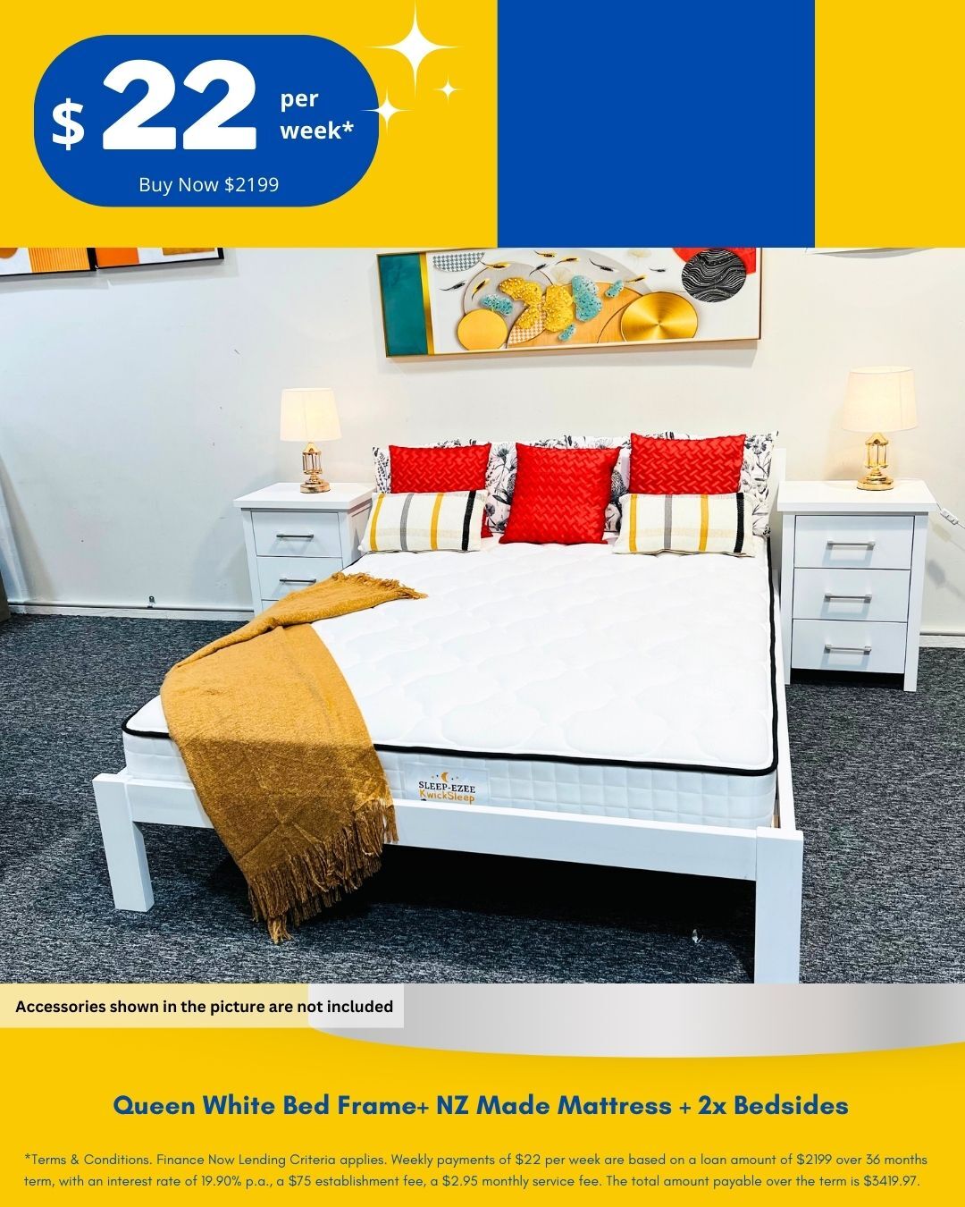 *Terms & Conditions. Finance Now Lending Criteria applies. Weekly payments of $22 per week are based on a loan amount of $2199 over 36 months term, with an interest rate of 19.90% p.a., a $75 establishment fee, a $2.95 monthly service fee. The total amount payable over the term is $3419.97.