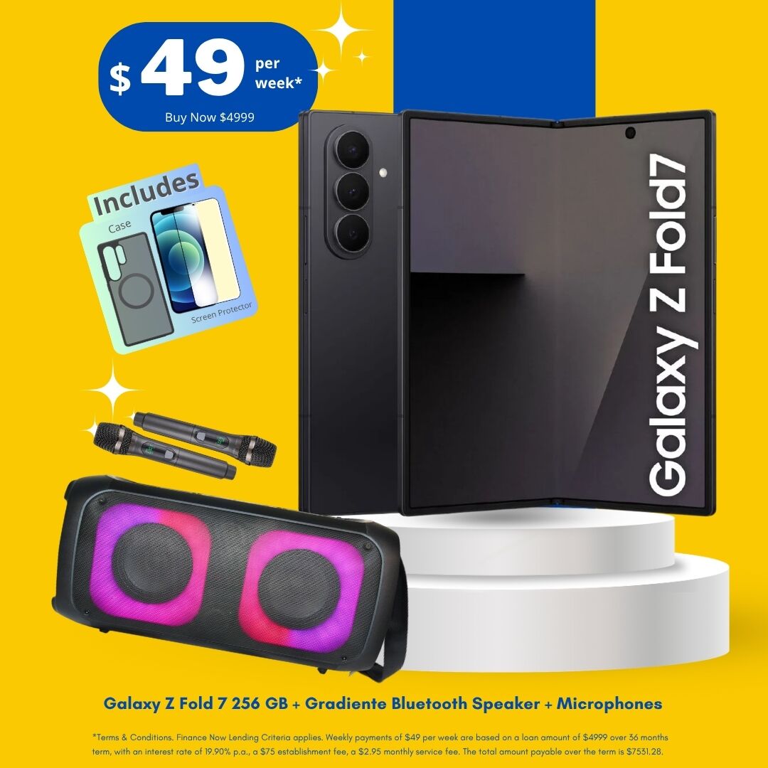 Galaxy Z Fold7 256GB Package Deal NZ is a premium combo for customers who want a powerful foldable phone with useful extras in one deal. This package includes the Galaxy Z Fold7 256GB, Gradiente Bluetooth speaker, microphones, case and screen protector. It is a great choice for productivity, entertainment, streaming, content and everyday use. Samsung New Zealand lists the Galaxy Z Fold7 in 256GB, 512GB and 1TB options.